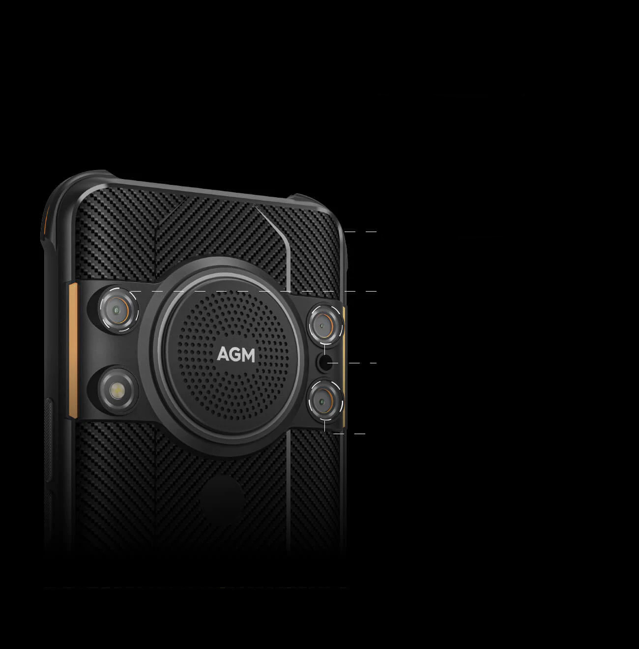 Задняя панель AGM H5 изготавливается как карбоновое волокно*, используемое в аэрокосмической отрасли и военной технике. Обеспечивает гладкую поверхность, устойчивую к царапинам.