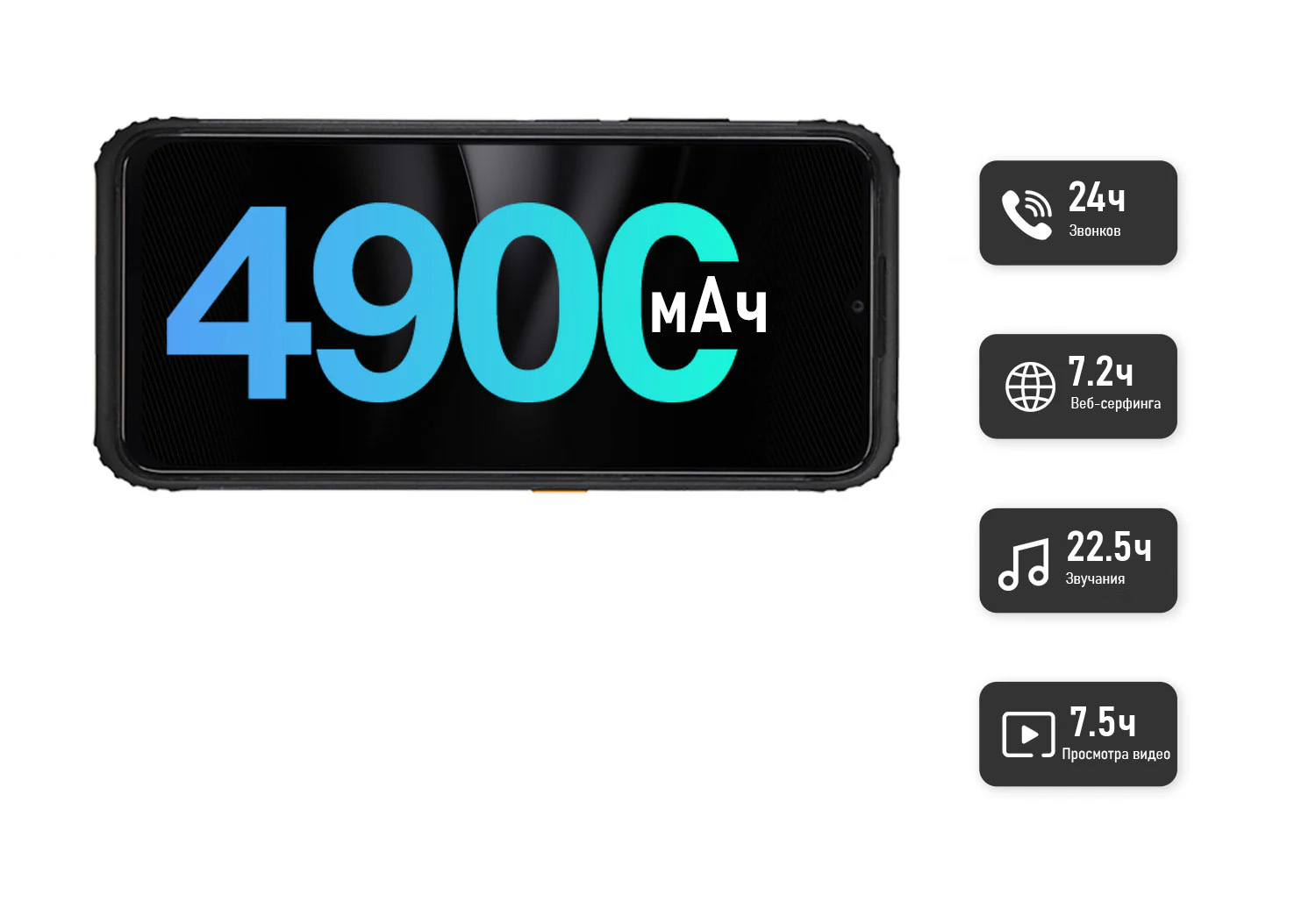 Великолепный аккумулятор ёмкостью 4900мАч, обеспечивает надёжную стабильную работу. Создан для суровых ежедневных нагрузок во время многомильных переходов.