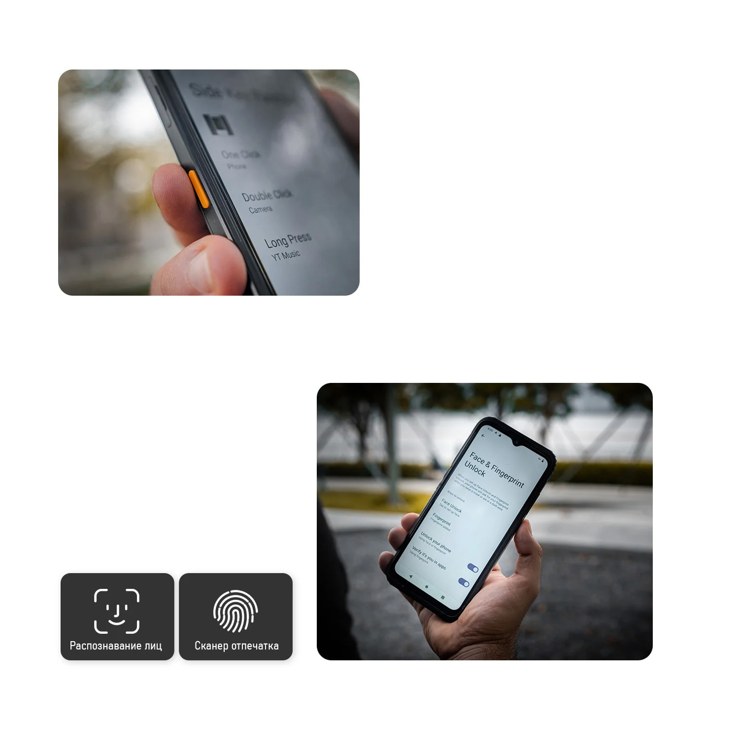 Зачем пользоваться кнопками, когда можно улыбнуться или прикоснуться пальцем. Быстрый и надёжный способ 21 века. Выбирайте или используйте вместе разблокировку распознаванием лица или сканером отпечатка.