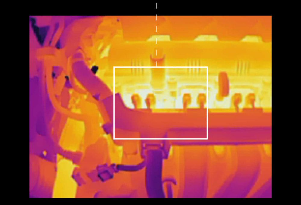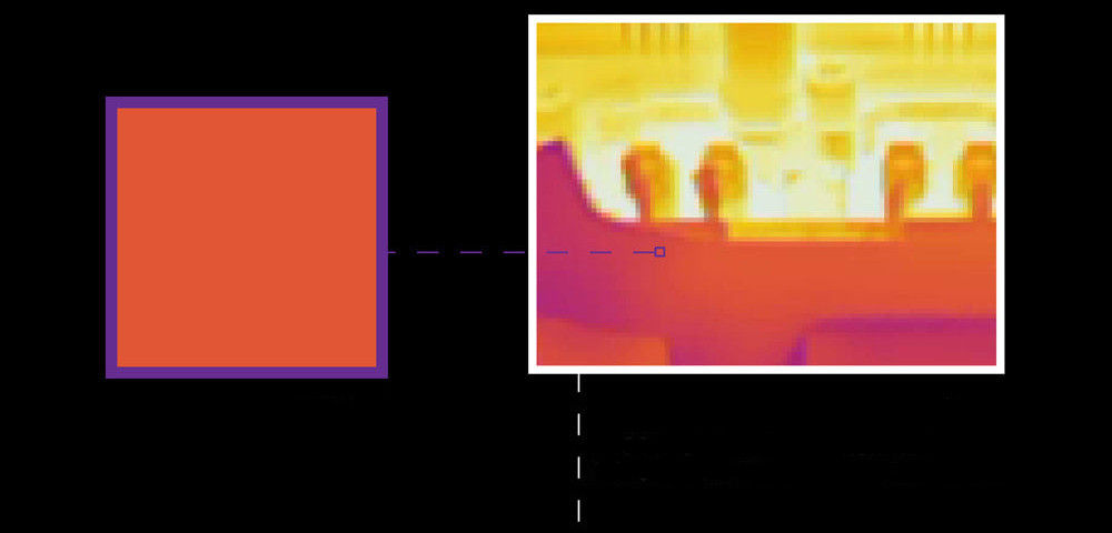 Различные цвета отображают самые горячие места, более тёмные оттенки отображают небольшие изменения температуры объекта.